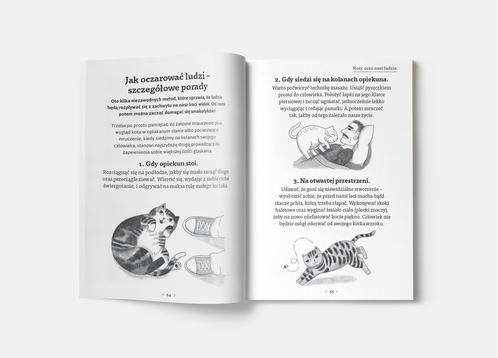 Słowem: co czyni koty tak wspaniałymi? Znajdziesz tu odpowiedzi na te wszystkie nurtujące pytania. Niezależnie od tego, czy jesteś opiekunem tajemniczej kociej piękności, eleganckiego osobnika z rodowodem, czy burego mruczka, który zawsze chodzi swoimi drogami, ten pełen humoru przewodnik będzie wyjaśnieniem zabawnego – oraz często zaskakującego – zachowania twojego kota.