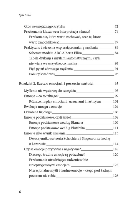 Informacjom teoretycznym towarzyszą ćwiczenia, które wesprą cię w zmianie myślenia, pomogą ci pracować z emocjami i nauczą cię działać zgodnie ze swoimi wartościami. Krok po kroku zaczniesz dostrzegać, że poprawia się twoja jakość życia i podnosi poczucie wewnętrznego spokoju i radości.