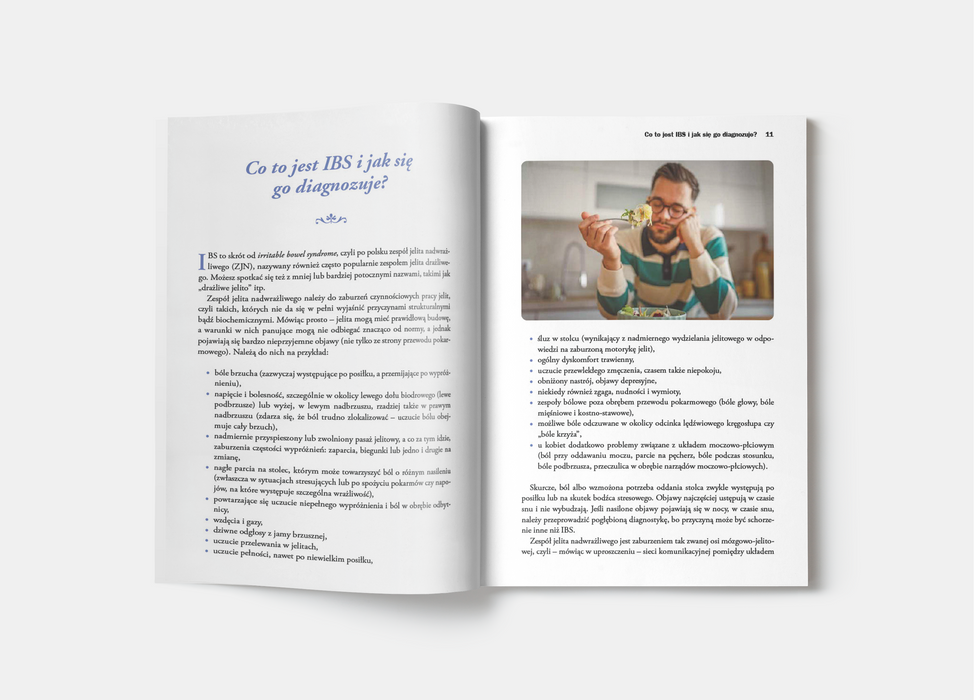 Co to jest zespół jelita drażliwego? Do jakiego lekarza należy się udać, jeśli dokuczają ci „problemy z brzuchem”? Dlaczego mikrobiota jelitowa jest tak ważna? Jakie mogą być przyczyny przykrych objawów z przewodu pokarmowego – i jak im zapobiegać? Co kryje się za skrótami IBS, SIBO, low-FODMAP? Autorka podaje odpowiedzi na te i wiele innych pytań związanych z zaburzeniami jelitowymi. Opowiada też o niesamowitych powiązaniach pomiędzy jelitami, mózgiem, stresem, wewnętrznymi mikrobami oraz stylem życia, który prowadzisz. Dowiesz się między innymi tego, co ma wspólnego regularne scrollowanie telefonu z problemami trawiennymi, dlaczego po spożyciu niektórych produktów twój brzuch chce eksplodować (i czy można to zmienić) oraz czy ważniejsze od stosowania specjalnych diet i suplementów jest to, by… po prostu się wysypiać.