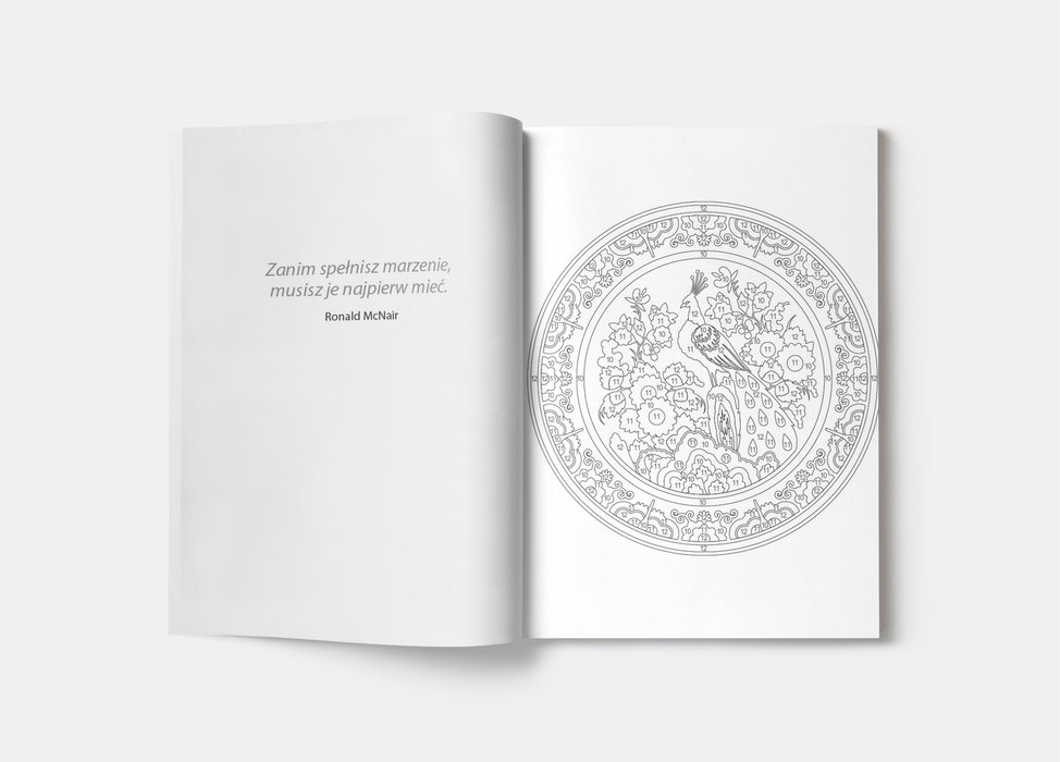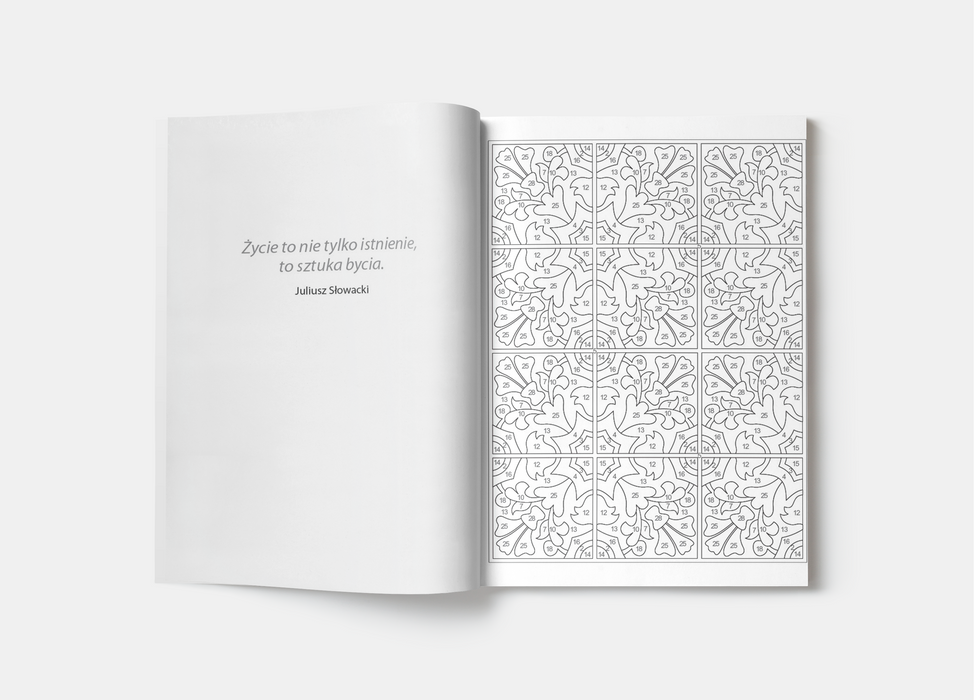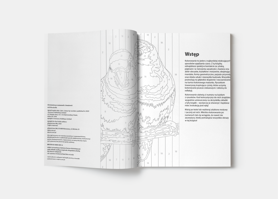 Na każdym z rysunków znajdują się duże, czytelne numery, a kod kolorystyczny wygodnie umieszczony na skrzydełku pozwala łatwo znaleźć odpowiedni kolor bez konieczności odwracania stron.